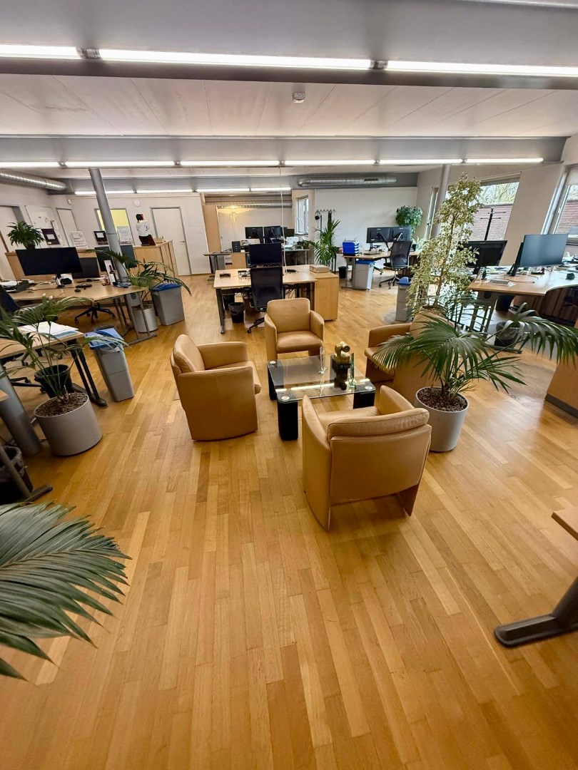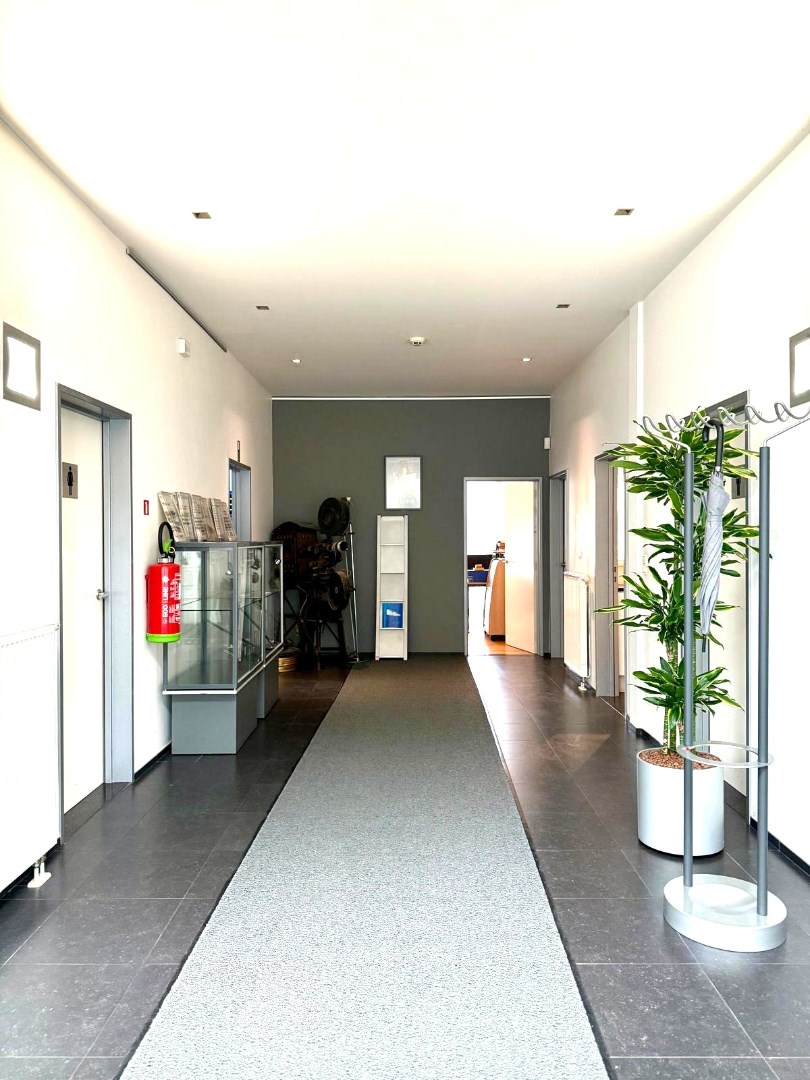 - Handelsgelijkvloers bestaande uit inkomhall 40m² - dames- en herentoiletten - bureau 6m² - bureau 18m² - vergaderzaal met keuken 43 m² + depot 52m² + depot 120m².