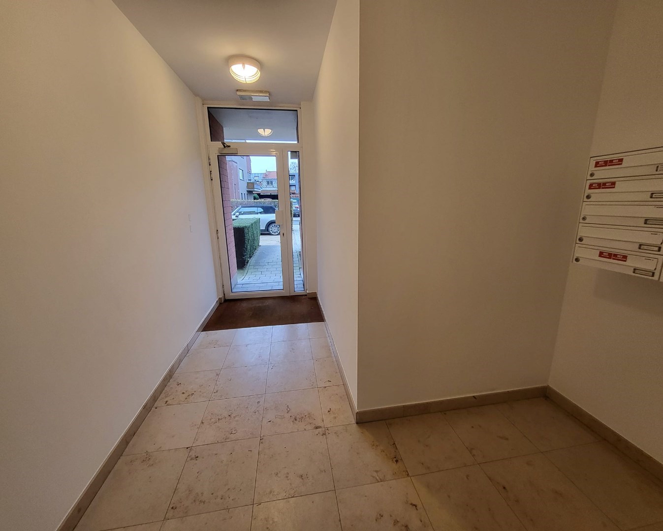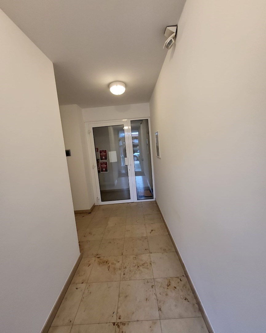 Indeling van de duplex : Inkomhall - wc - woonkamer met open keuken.