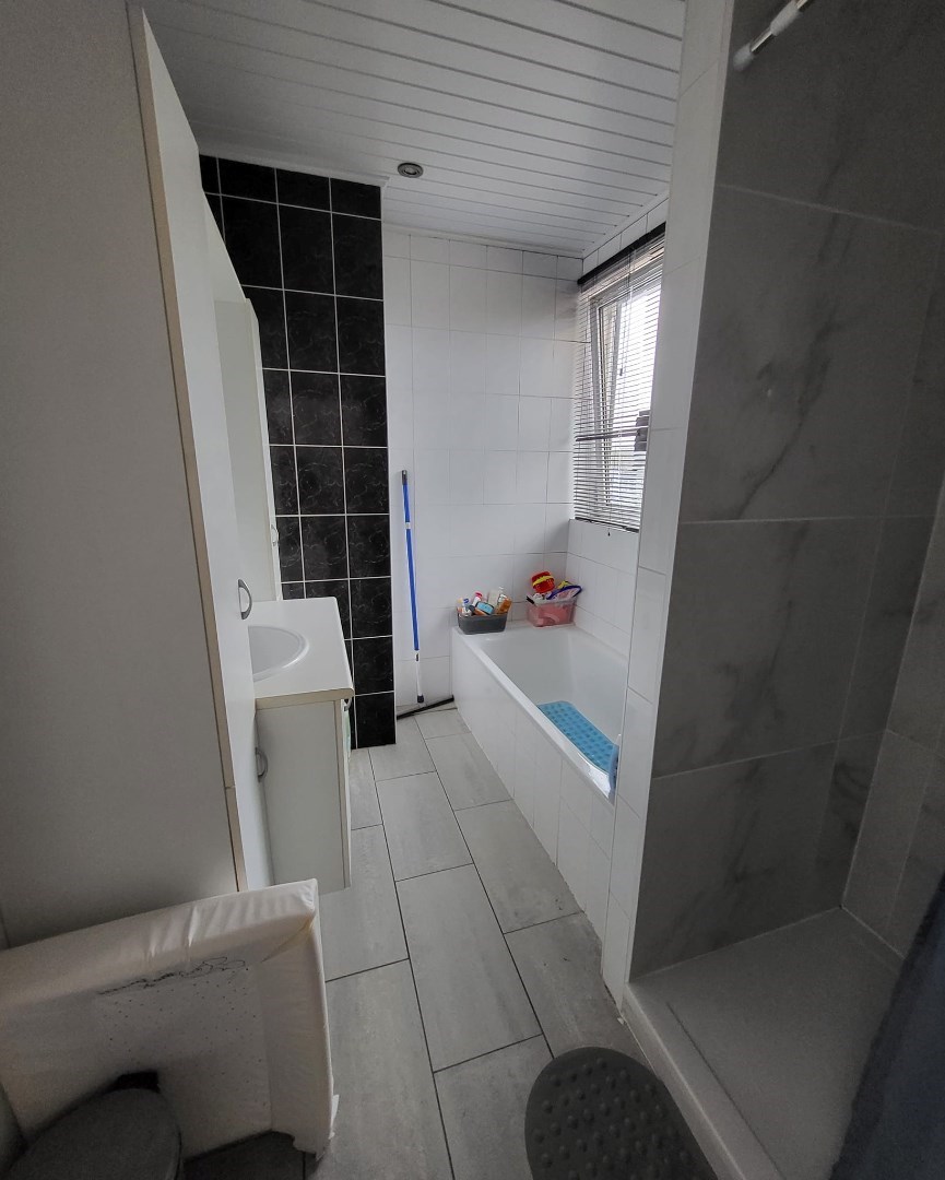 Verdiep : technische ruimte (wasmachine en droogkast) - badkamer met bad + douche + lavabo - 2 slaapkamers.