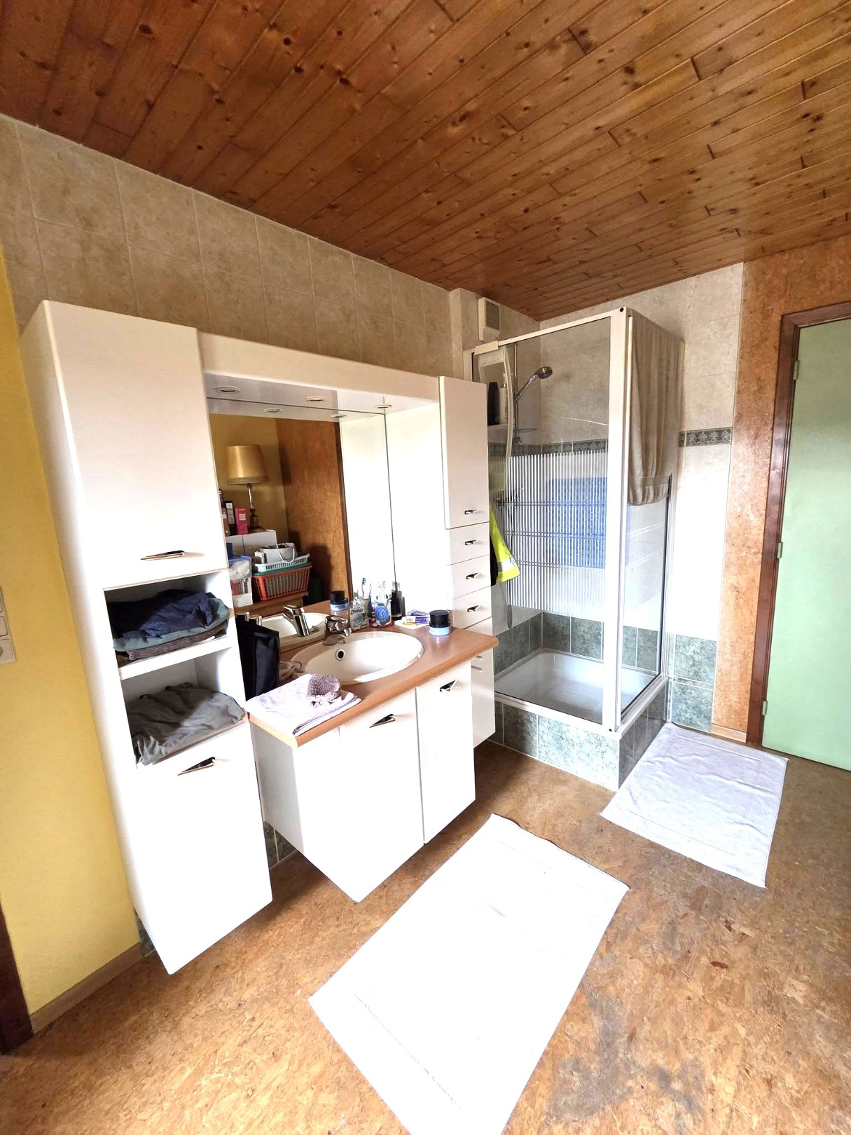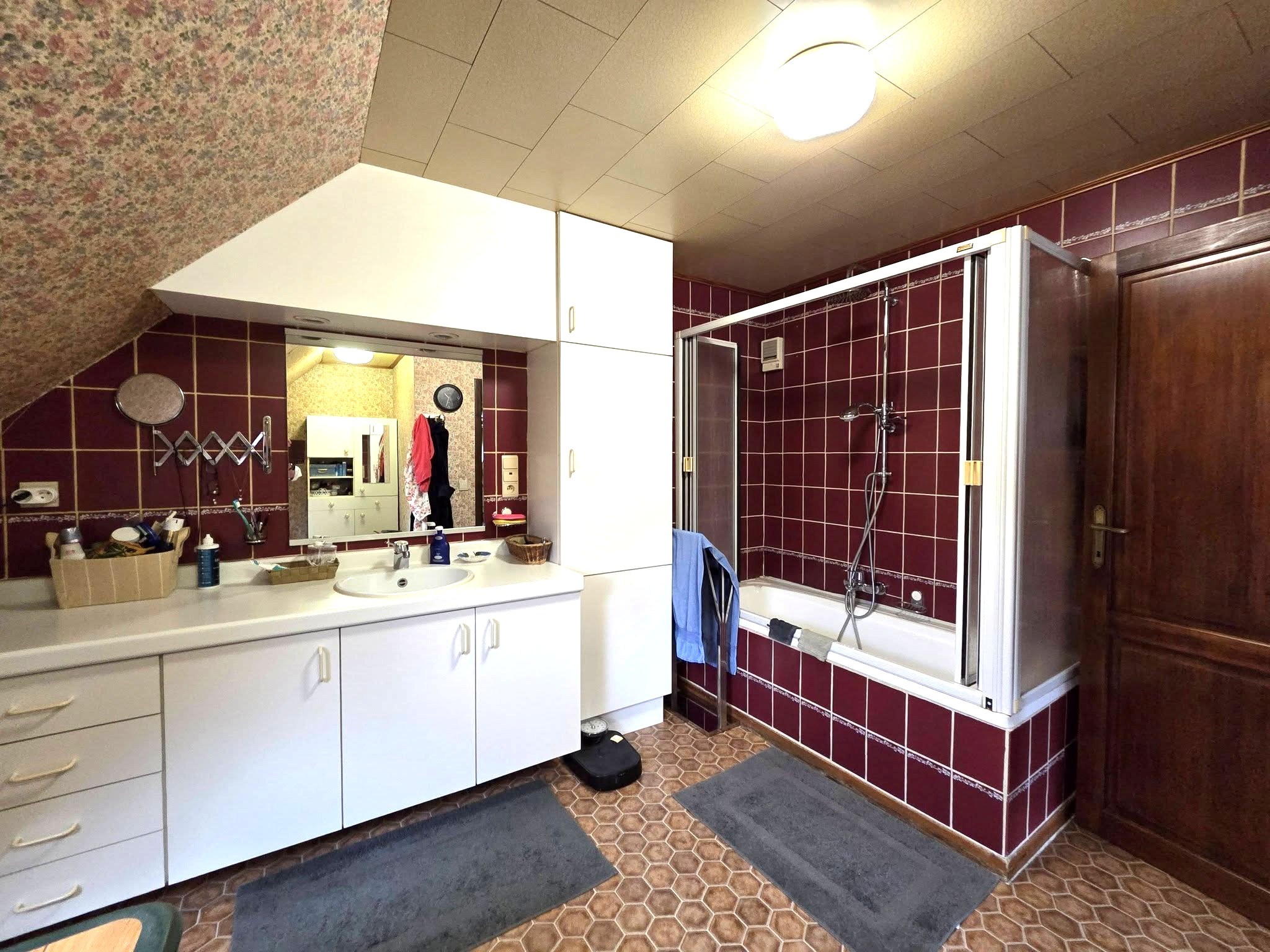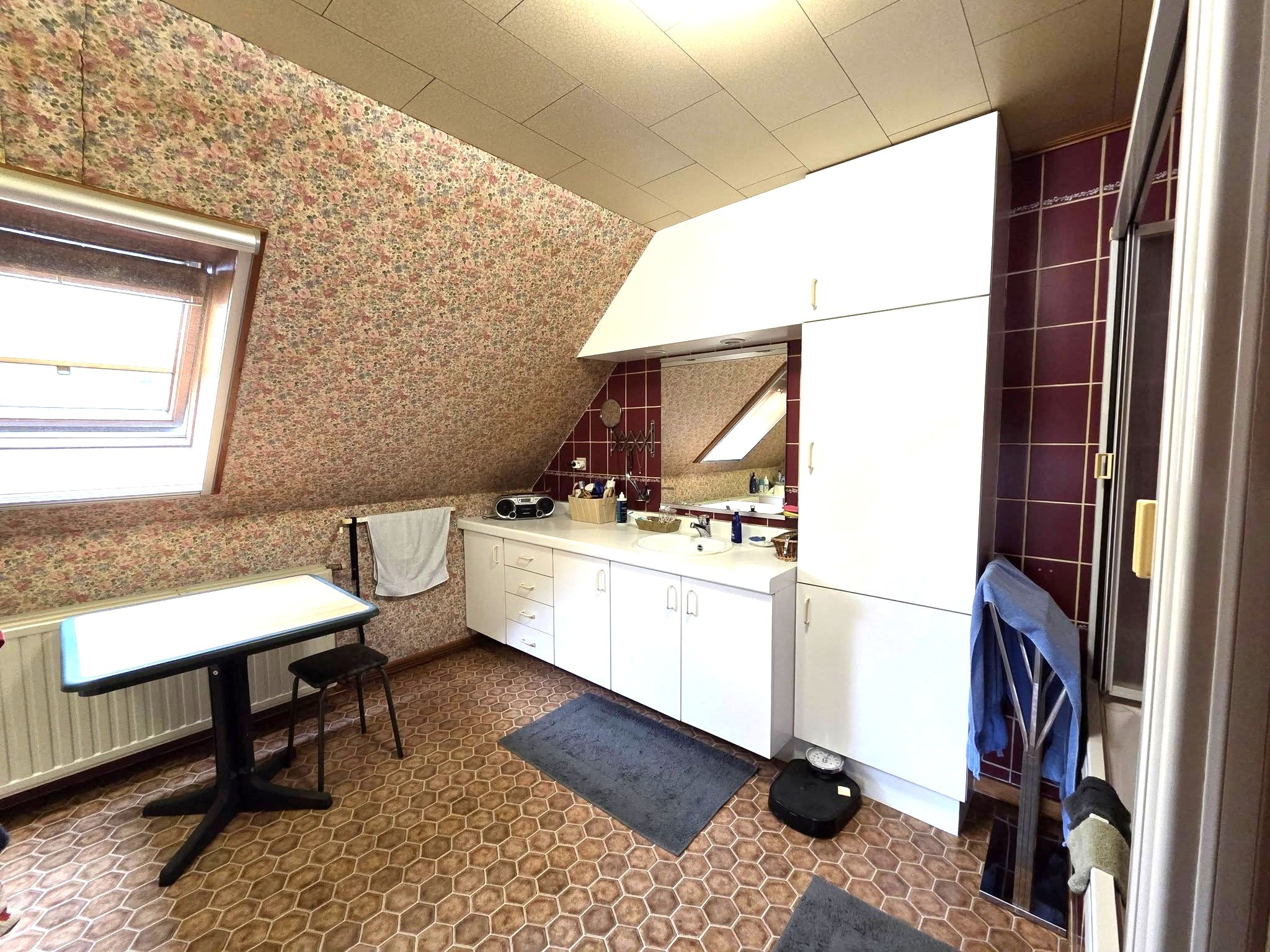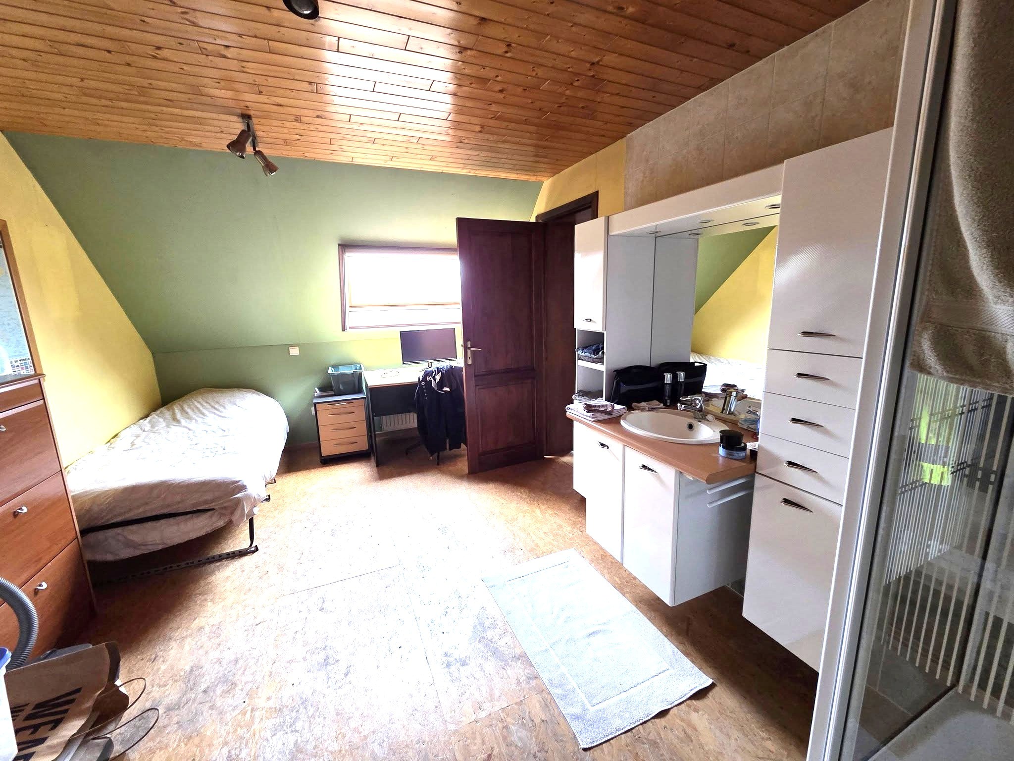 Op de verdieping zijn er 3 slaapkamers (15m²/20m²/20m²) en een badkamer (lavabo/bad/wc) 12m².