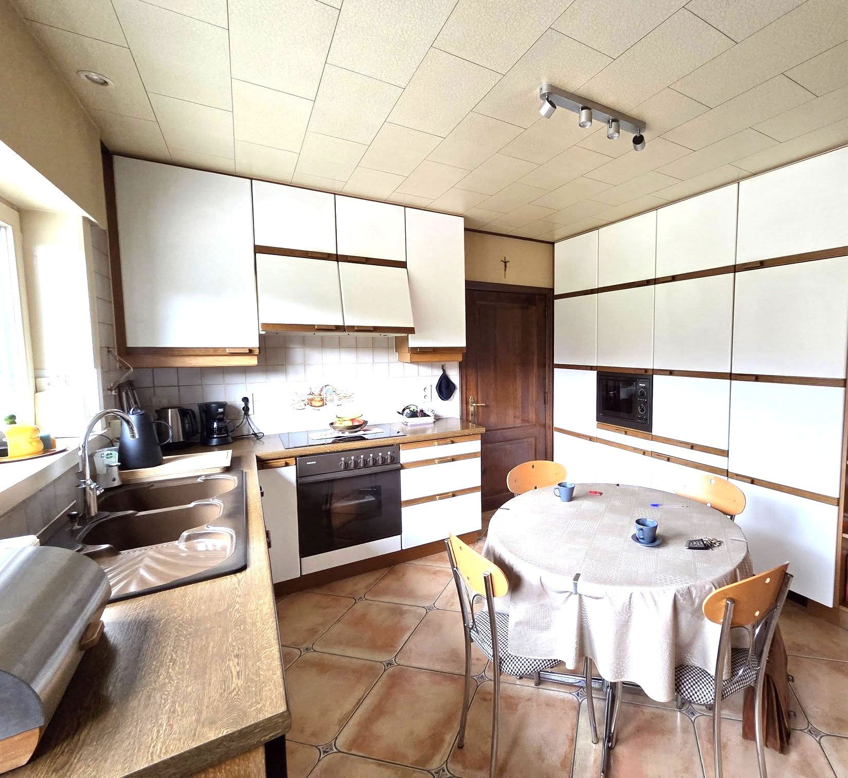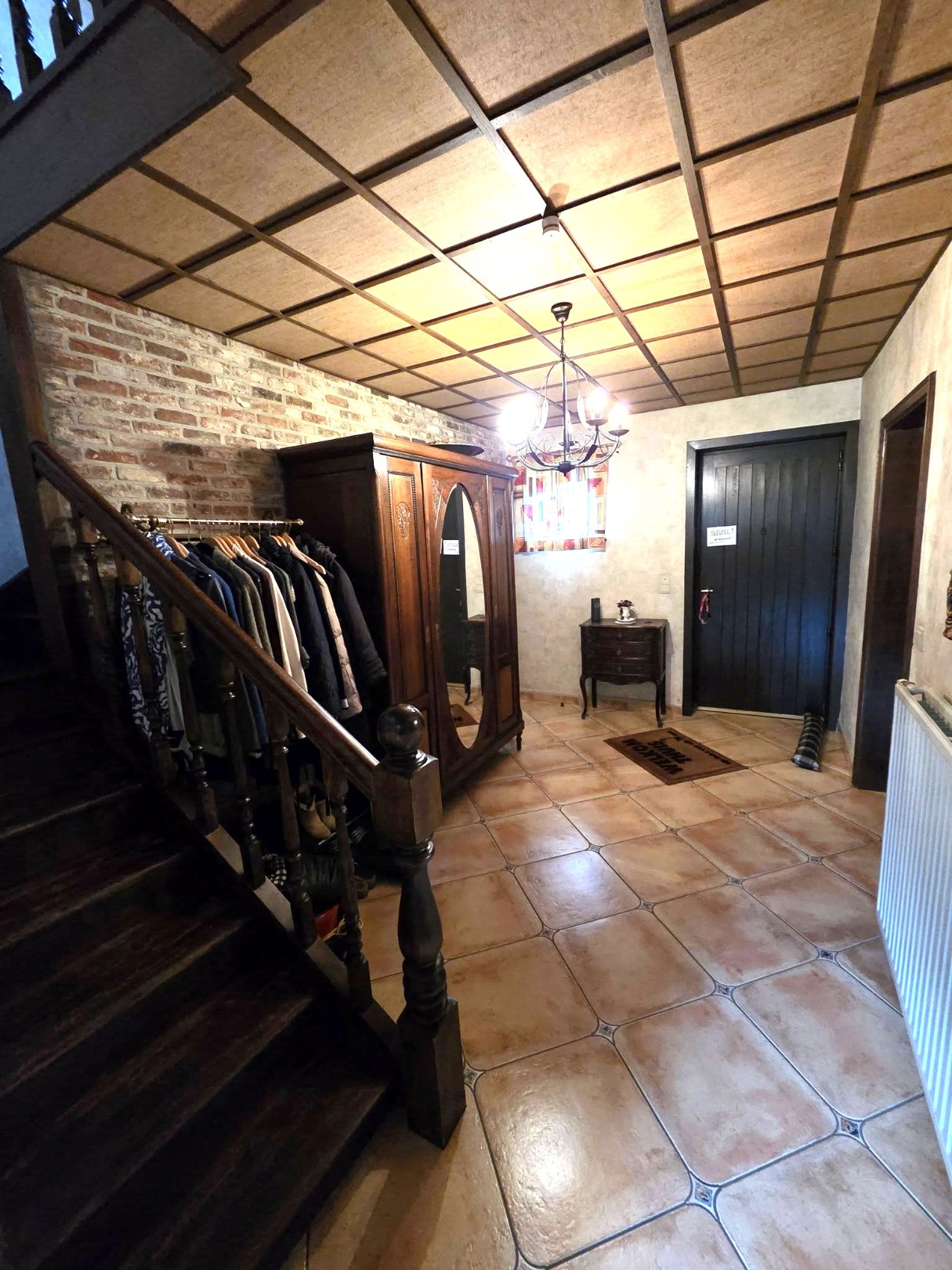 Indeling : Inkomhal 12m² - wc - woonkamer (deze wordt nog warmer wanneer u de pelletkachel activeert) 45m² - keuken (op te frissen) 14m².