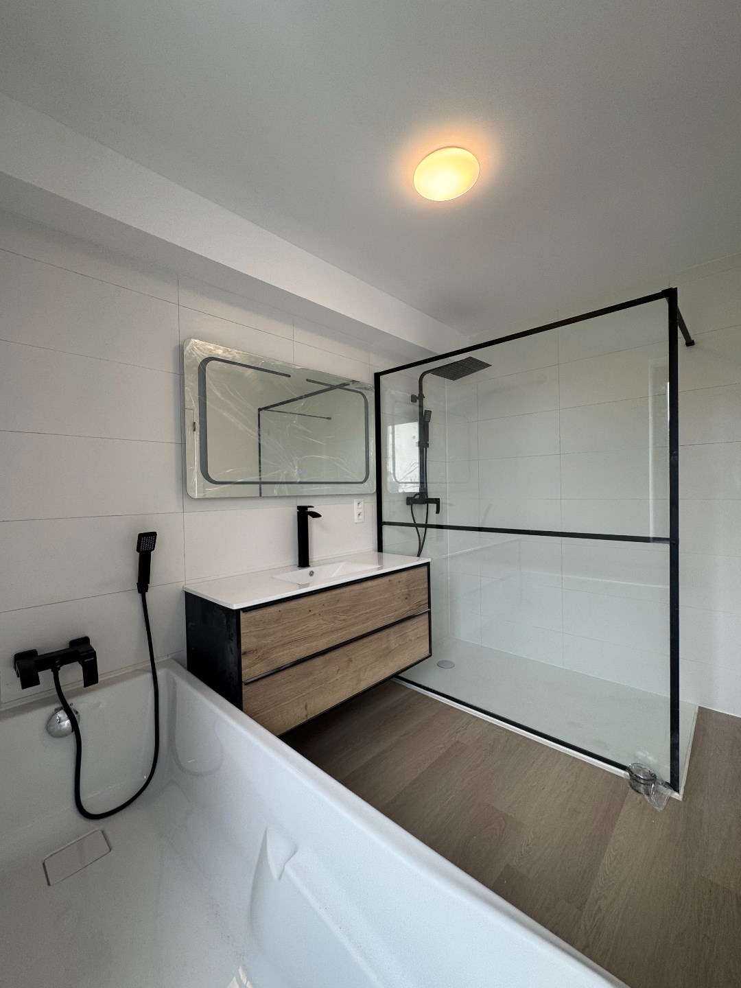 • Badkamer (± 6,2 m²): Luxueuze afwerking met inloopdouche, bad en lavabo.