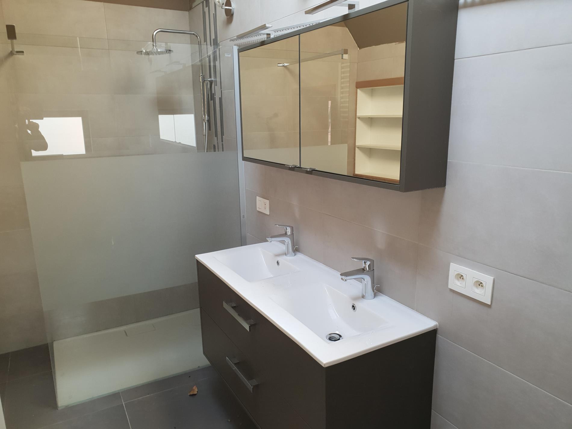 Indeling : Open keuken van 13m² - woonkamer 18m² - eetkamer 16m² - gerenoveerde badkamer met wc/lavabomeubel(2) / douche / aansluiting voor wasmachine.