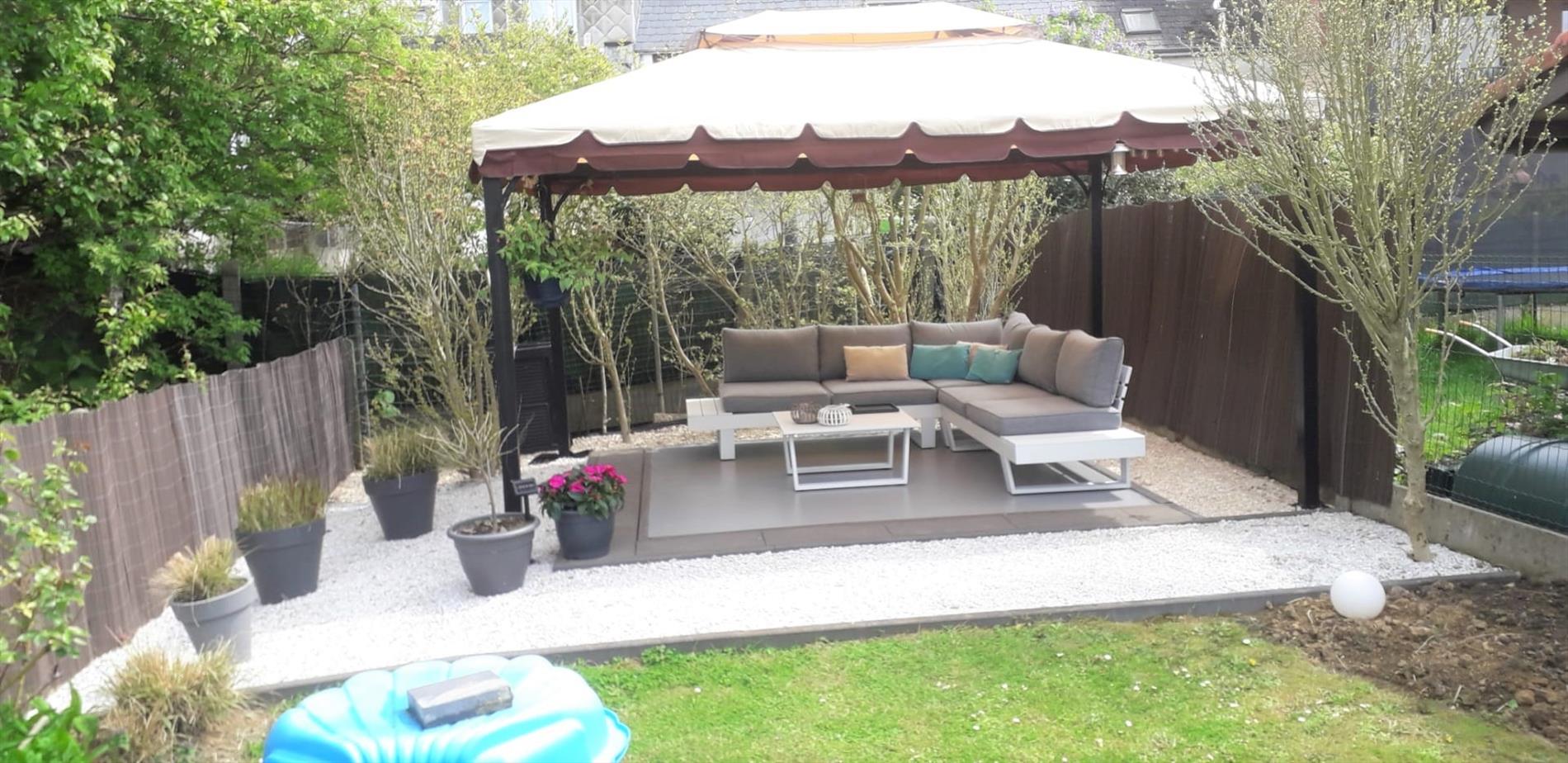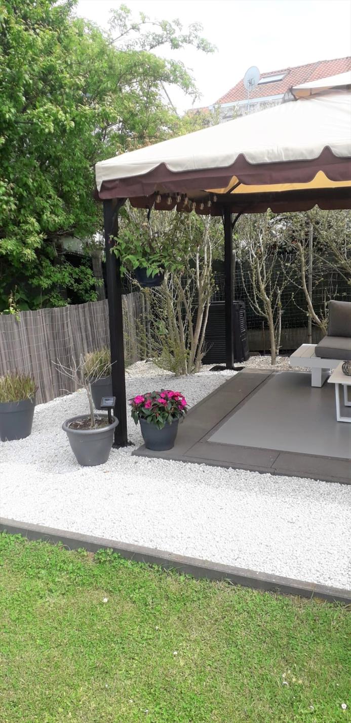 Op de barbeque in deze aangename tuin werden al heel wat brochettekes gebakken.