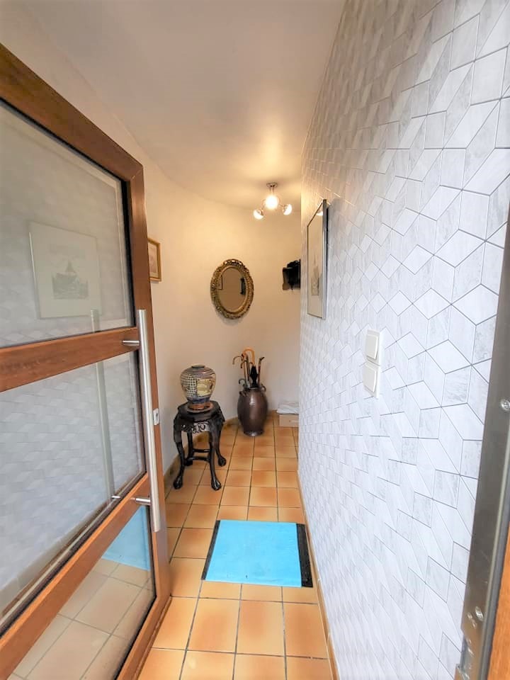 Inkomhall - halfopen keuken 9m² met woonkamer van 32m² (met rechtstreekse toegang naar de tuin).