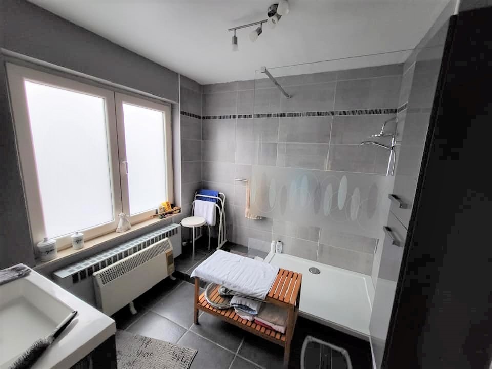 Op de verdieping : vernieuwde badkamer met douche en lavabo - wc - 3 slaapkamers (10/13/14m²) en nog een extra slaapkamer van 15m² én nog een zolderkamer/slaapkamer/bureau van 15m².