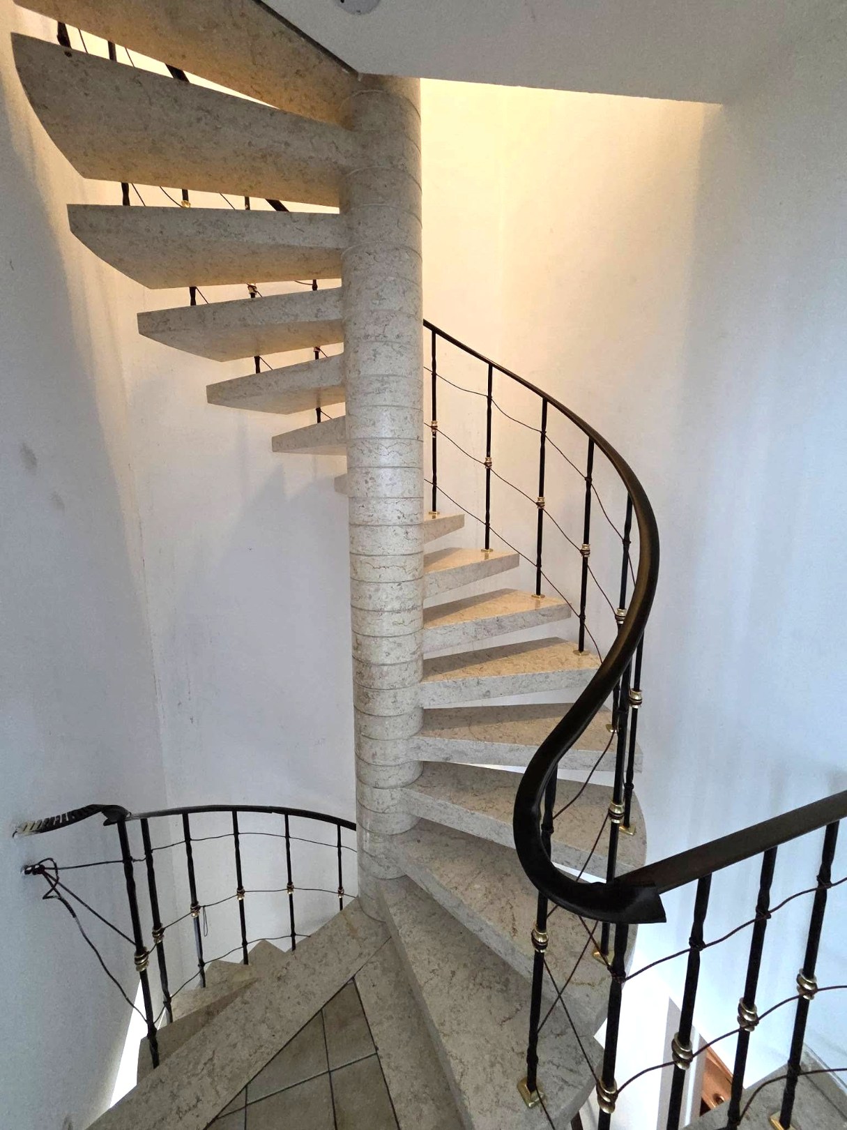 De tweede verdieping omvat drie slaapkamers (12 m², 14 m² en 6 m²), geschikt als master bedroom, kinderkamers of bureau. De badkamer (5 m²) is uitgerust met bad, toilet en lavabo.