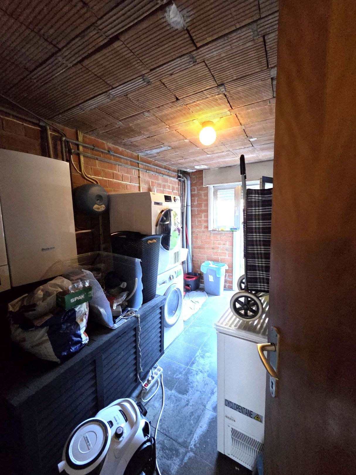 Bij binnenkomst bevinden we ons in de ruime inkomhall (12 m²), met aansluitend een gastentoilet (2 m²). De garage (25 m²) biedt plaats voor wagen en fietsen, en in de handige wasruimte (7 m²) is alle ruimte voorzien voor was- en bergruimte.