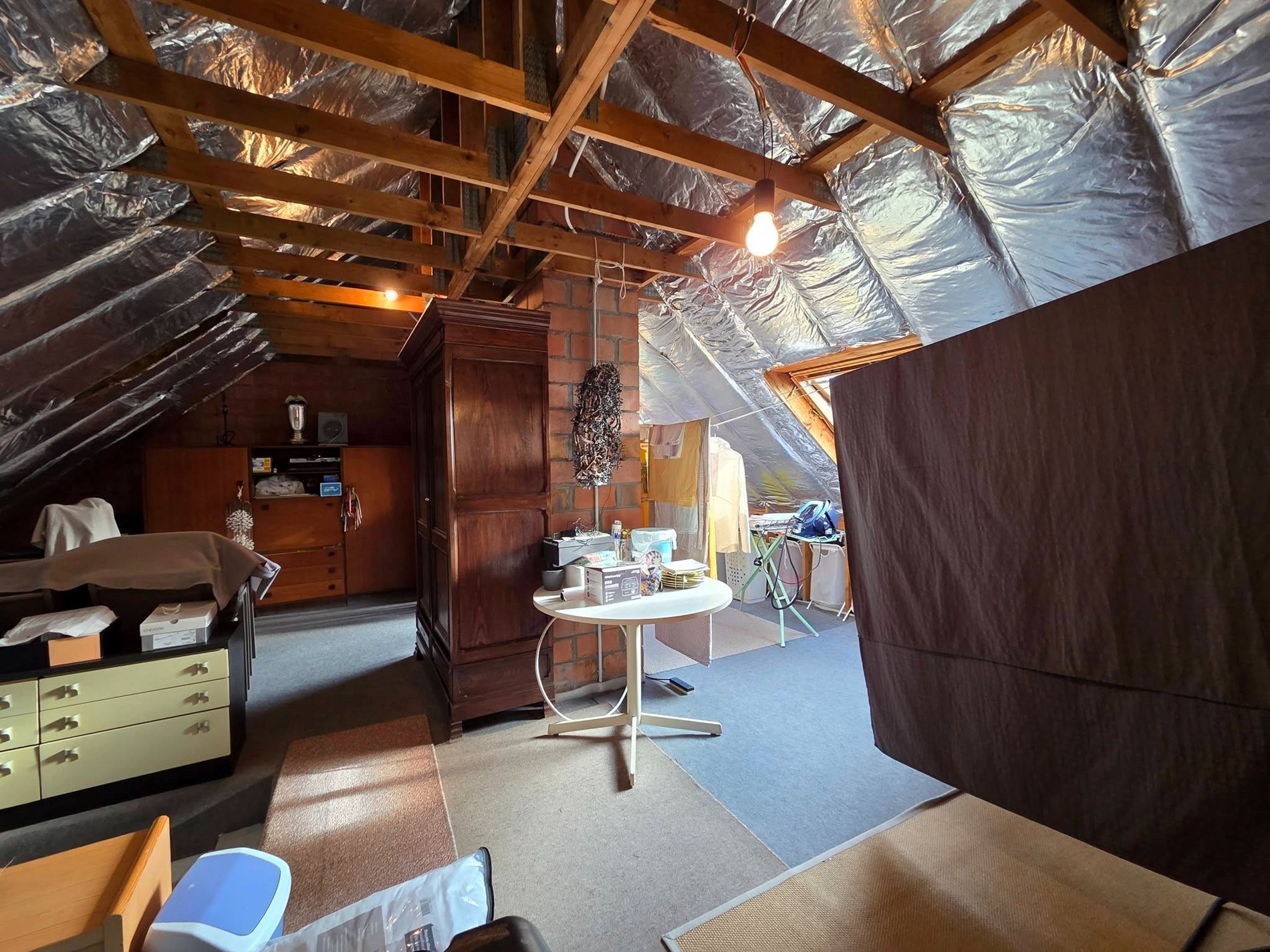 Via een vaste trap bereikt u de ruime zolderkamer van maar liefst 45 m², perfect als extra slaapkamer, bureau, hobbyruimte of polyvalente ruimte.