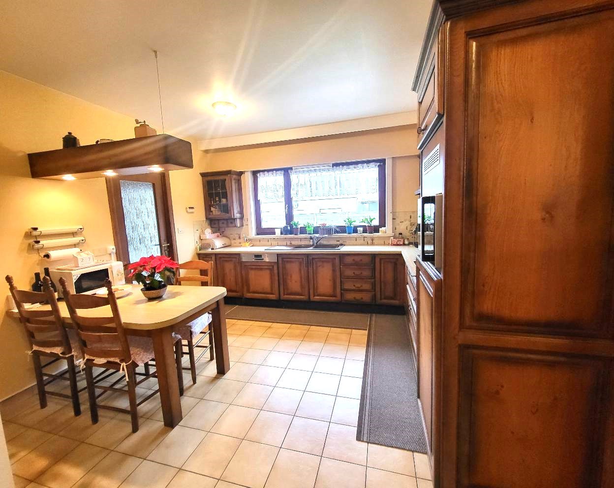 Indeling : Op de gelijkvloerse verdieping is er een inkomhall - wc - woonkamer 38m², aansluitend op de gesloten (kan open worden) keuken van 17m² en wasplaats 7m².