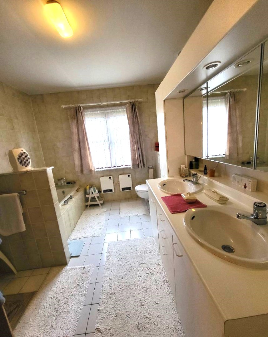 Er zijn 2 slaapkamers (14/10m²) en een bureau van 7m², alsook een badkamer (dubbel lavabomeubel + wc + bad + douche) van 10m².