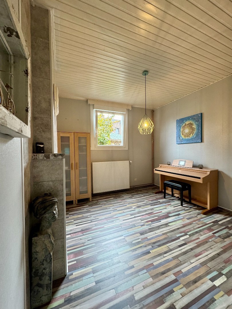 Unieke troef van deze woning: een slaapkamer (17m²) én badkamer op het gelijkvloers. Ideaal voor wie graag alles op één niveau houdt of toekomstgericht wil wonen.